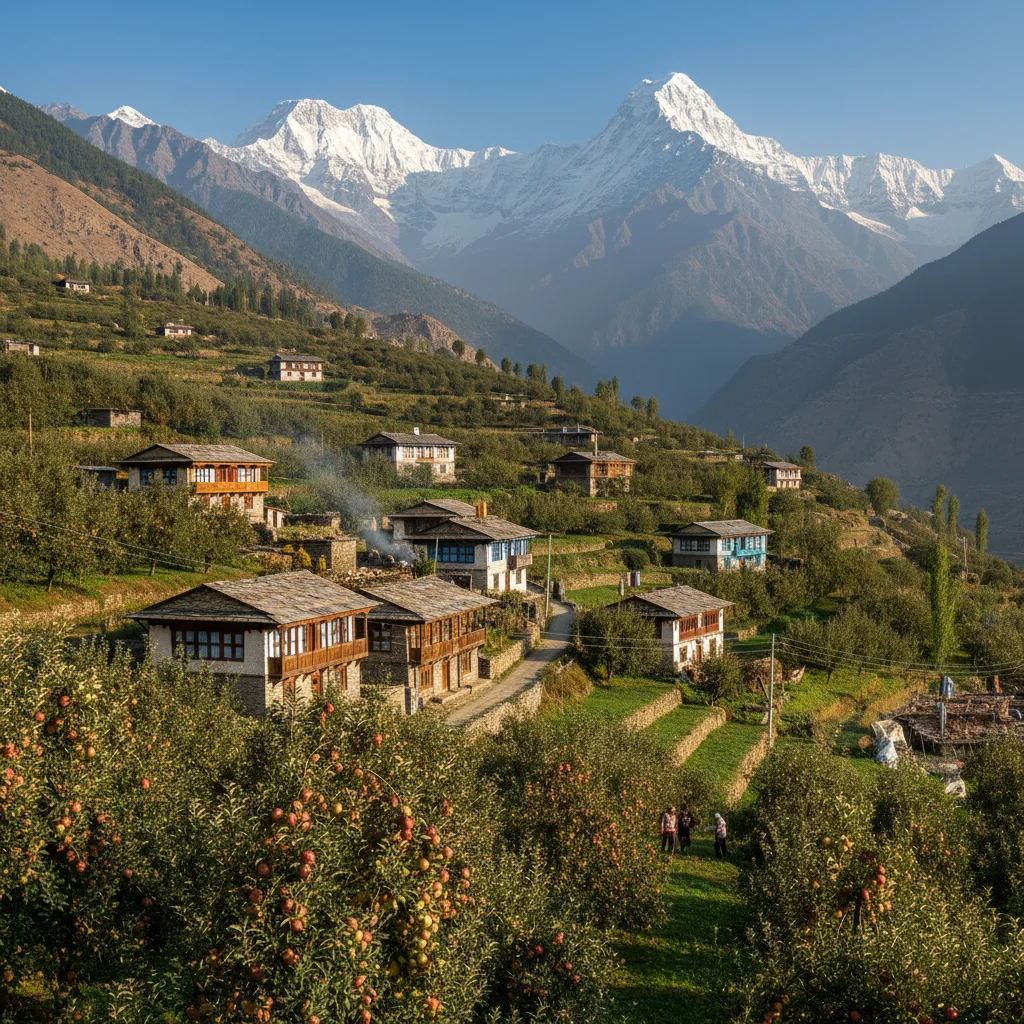 Depart for the stunning Sangla Valley, often called “Baspa Valley” after the Baspa River flowing through it. This picturesque valley features apple orchards, wooden Kinnauri houses with slate roofs, and snow-capped mountains creating postcard-perfect landscapes. Check into your hotel and enjoy an evening nature walk to Batseri Village, a traditional Kinnauri settlement showcasing authentic wooden architecture, temple carvings, and warm local hospitality along the Baspa River banks.